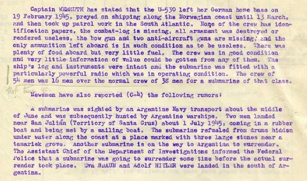 “On July 16, 1945, the Chicago Times carried a sensational article on the Hitlers having slipped off to Argentina.”