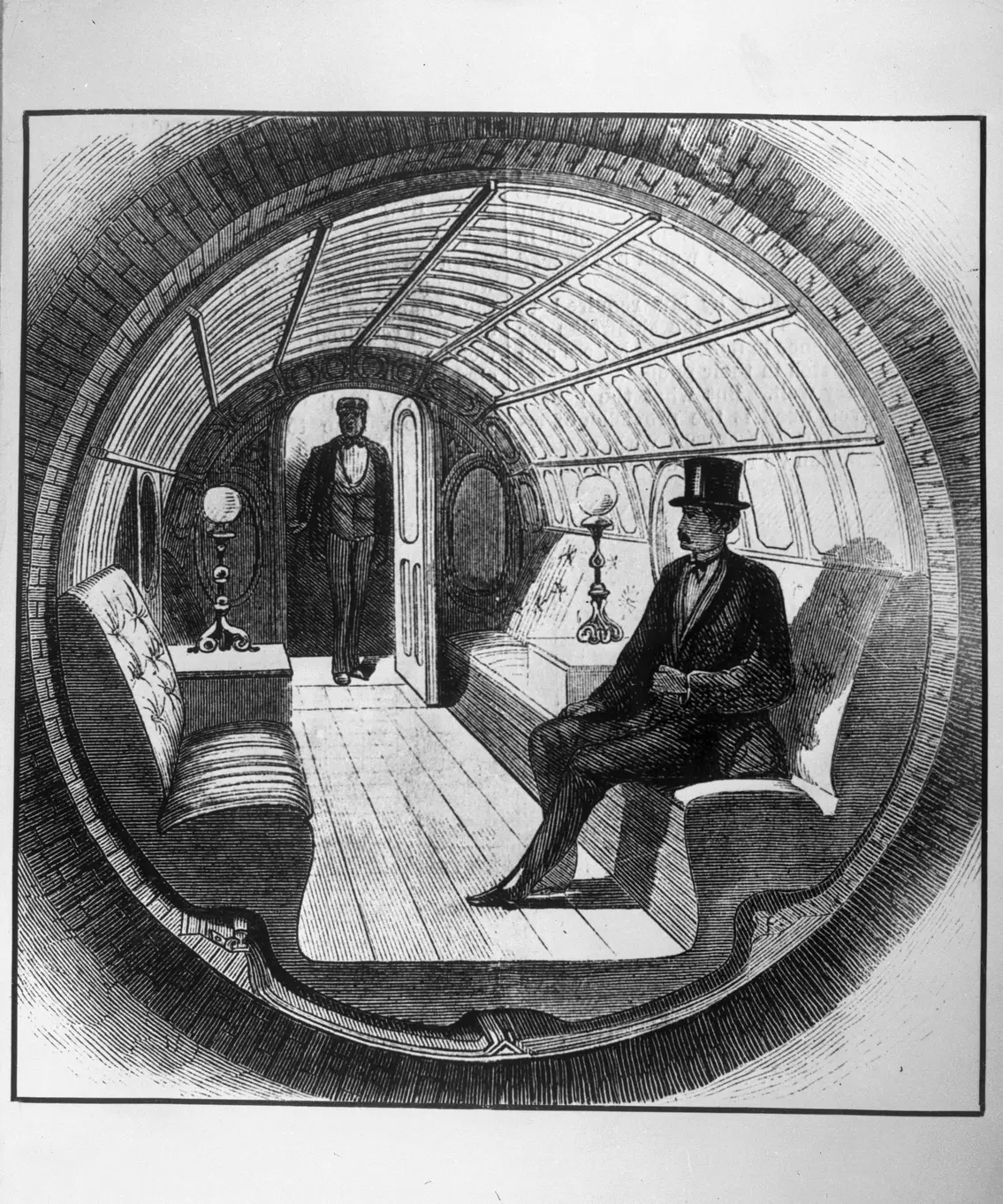 Pneumatic tube railways worked on a bluntly elegant principle: no engine onboard, no combustion, no electricity in the vehicle itself. A perfectly round tunnel, just wider than the capsule, reduced air leakage. Stationary pumps did all the work, either pushing compressed air behind the capsule or pulling it forward via vacuum.